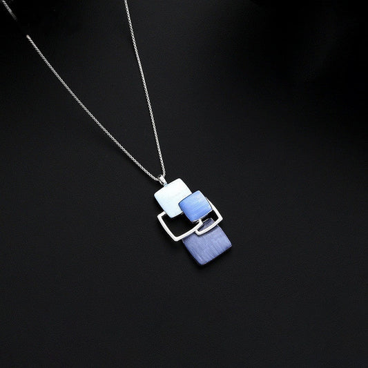 Colorful Painting Oil Geometric Hollow Square Necklace Creative