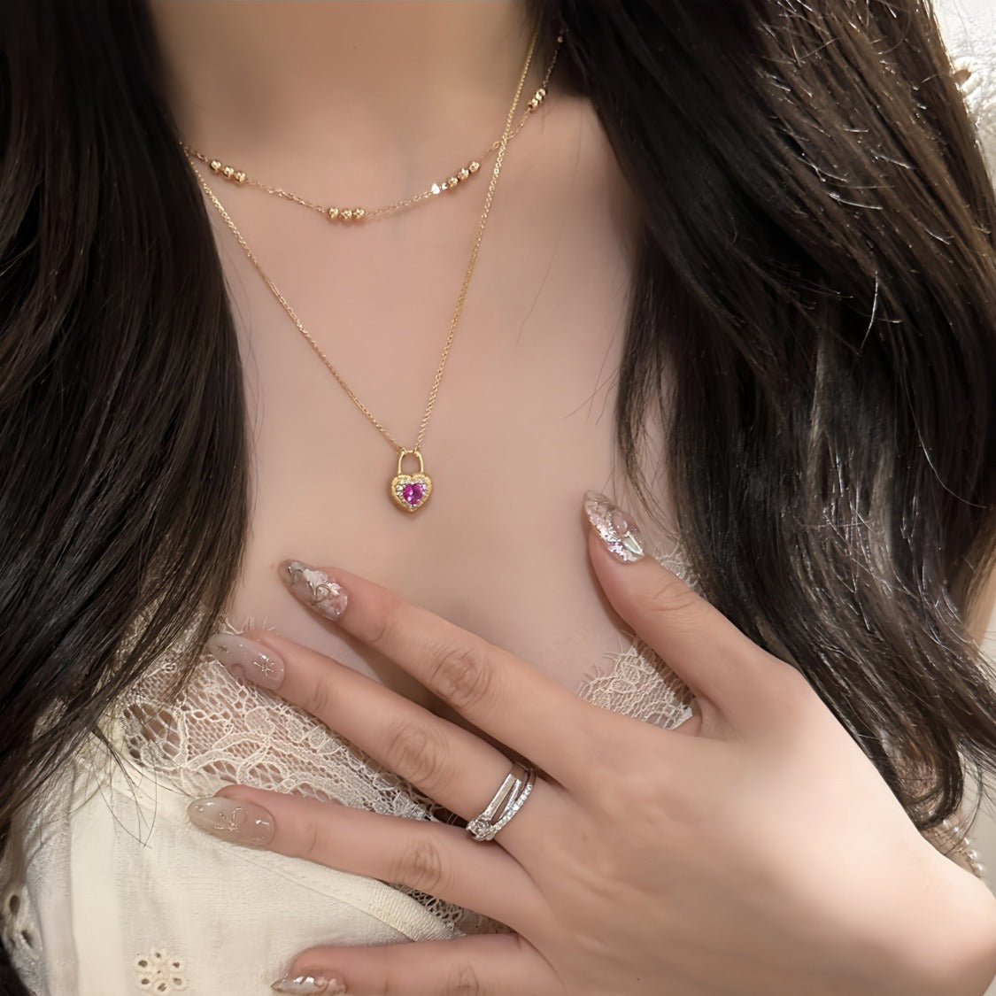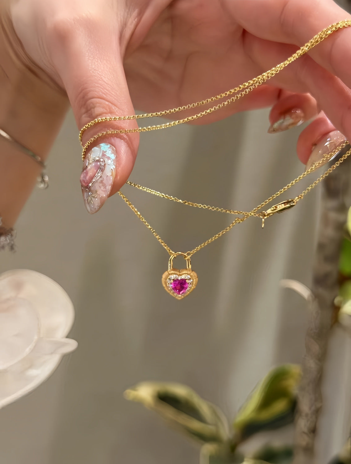 Lock Colored Loving Heart Lock Head Necklace Gold-plated Heavy Industry